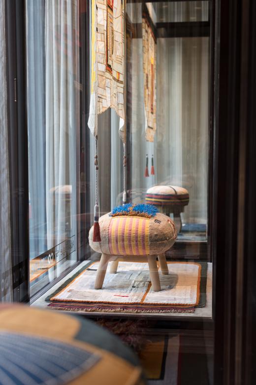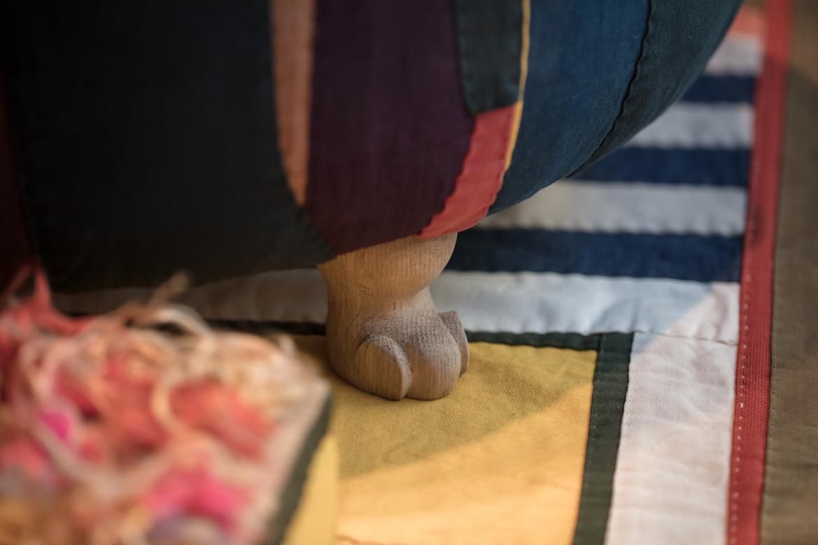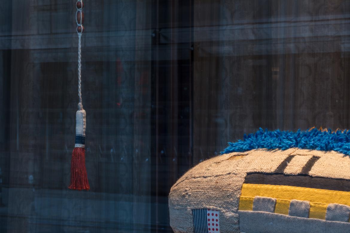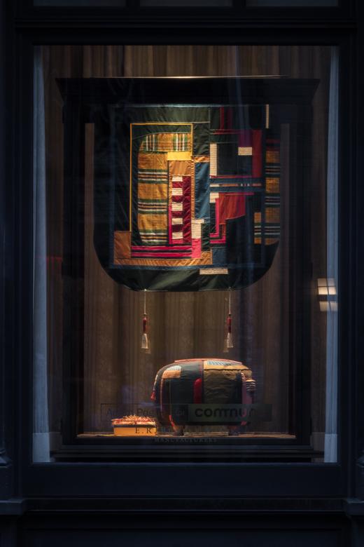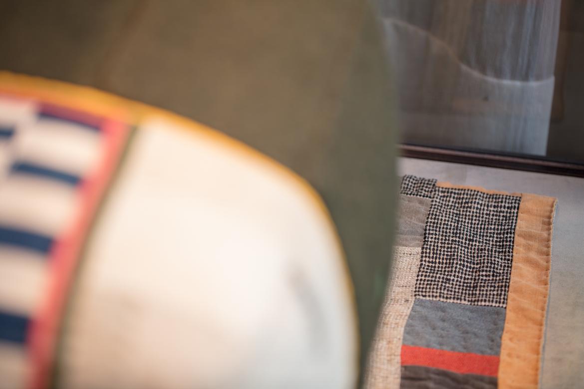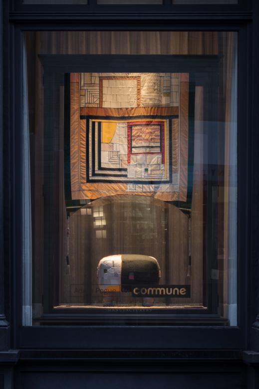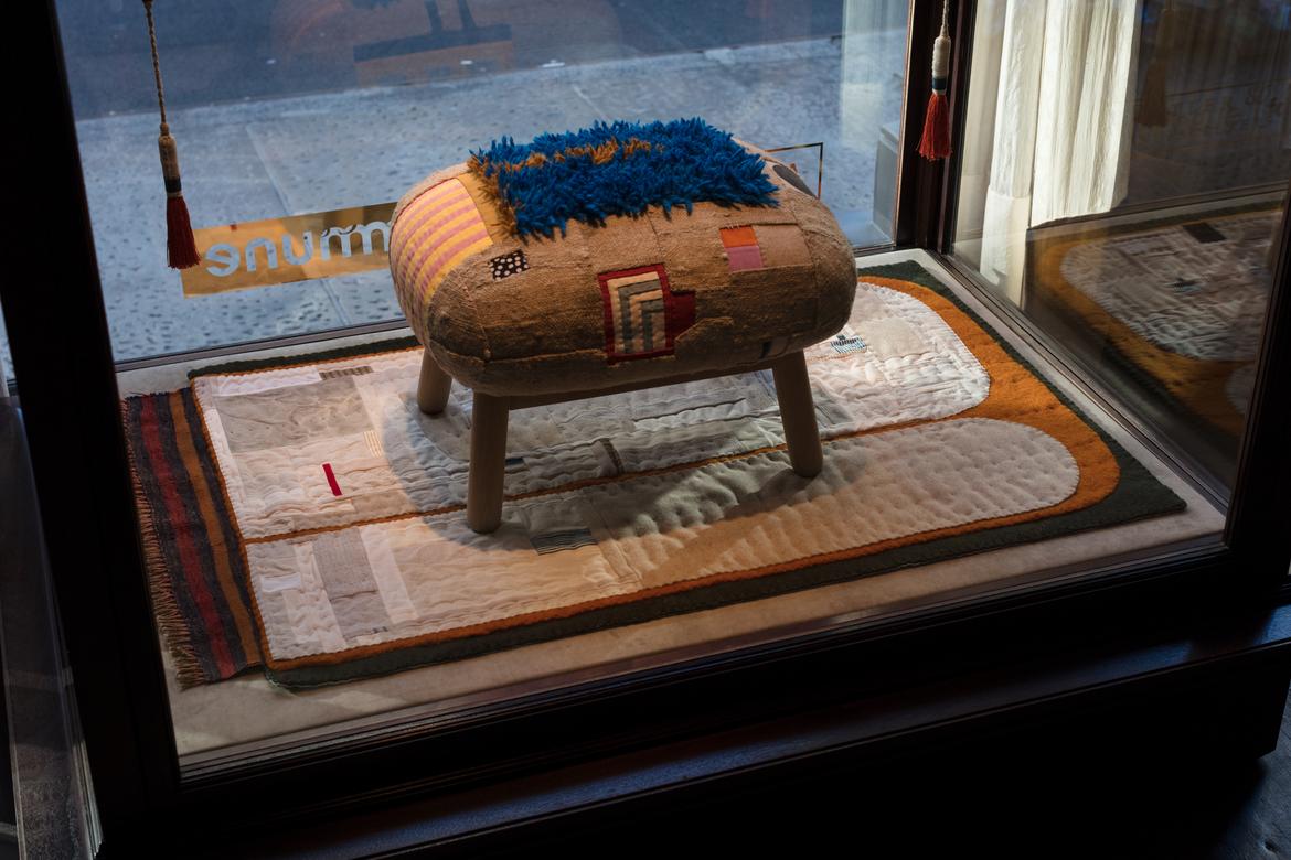 Adam Pogue works with Commune on product and special projects using textile remnants and vintage fabrics that Commune finds along the way. Obi fabrics from a trip to Japan, army canvas used for upholstery, and discarded carpet and drapery remnants are all reconfigured to create a new textile experience. Adam creates compositions that are familiar and yet completely original; with hand stitched details, pops of unexpected color, and unconventional shapes and material combinations.