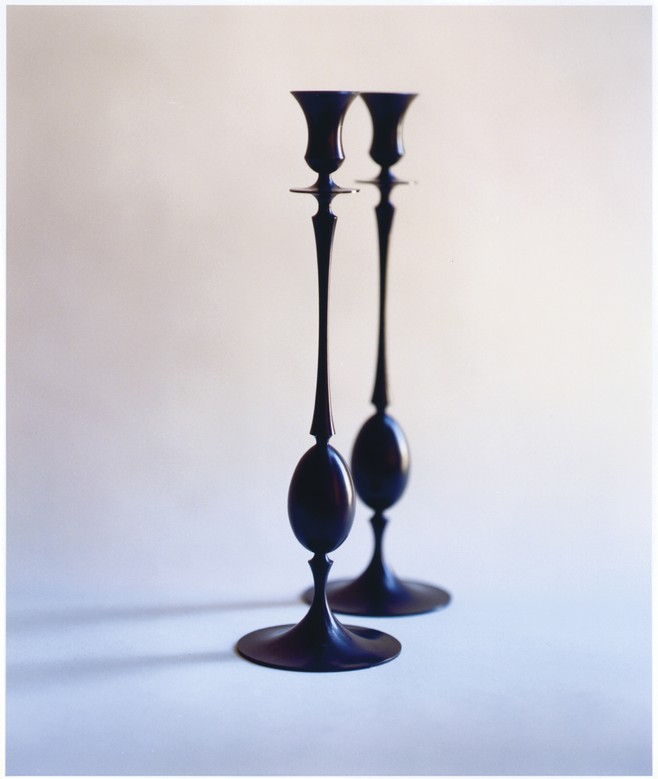 Intrigued by the classic but delicate shape of a Biedermeier candlestick found at a flea market, and impressed by the precision of nineteenth-century lathe work, he tried to capture these qualities using traditional spinning and casting techniques. Daunted, however, by the cost and labor required to realize them, the pieces remained as prototypes.