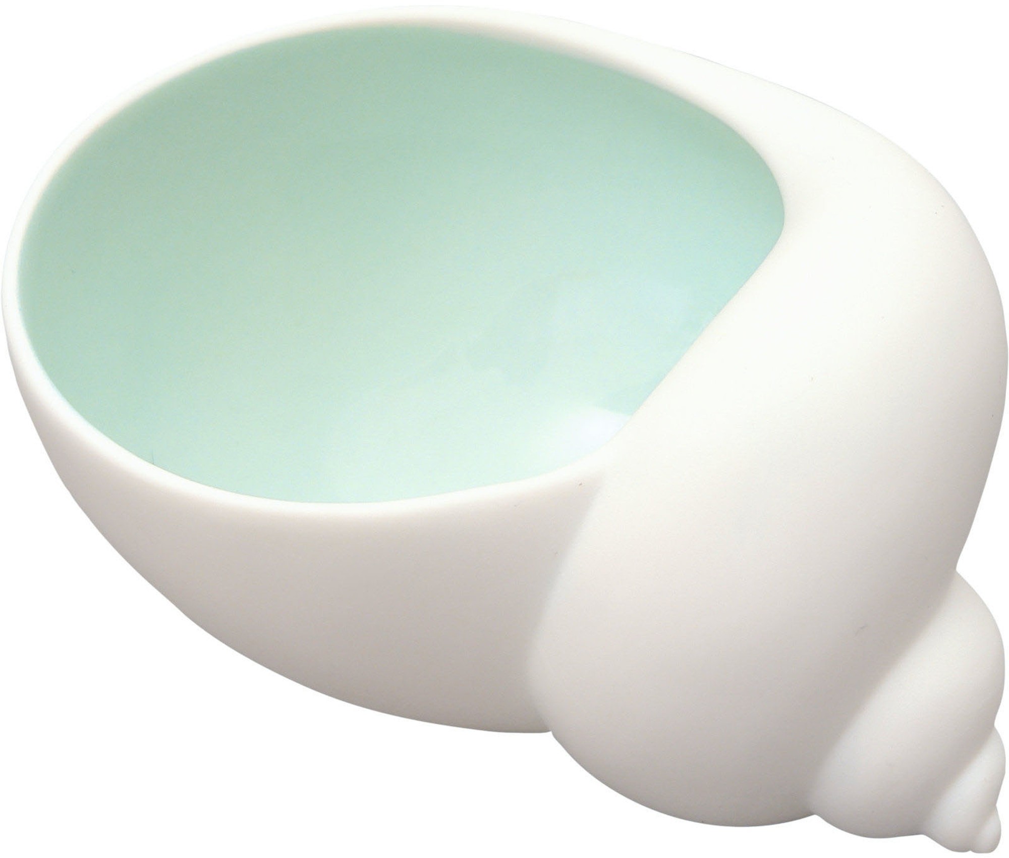 Adding salt and pepper alone has lost its charm. These days, a gourmet chef will look as far as sea salts enriched with lavender and hibiscus blossoms. So what could be more appropriate than serving these in matching receptacles? In the Maritime Collection of the US designer Ted Muehling, this small, porcelain sea snail can be found among shells, vases and lanterns. The pretty circles, made from fine biscuit porcelain, form a small dish, glazed in celadon.